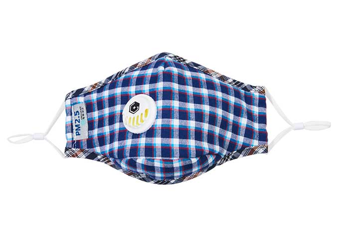 成人純棉立體帶閥口罩-灰藍(lán)格子